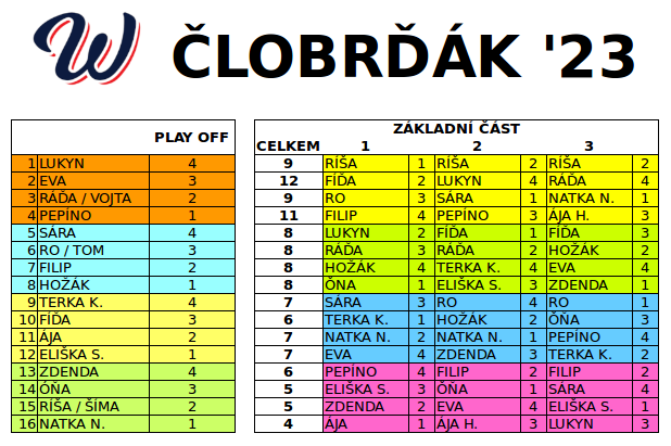 Liliana má novou ofinu, obě party byly moc šikovné, mladších bylo pořádné hejno, velkej Hugo zařídil pizzu a ještě opravil nadhazovací stroj a Óňa si nakonec nakonec o hru řekl. Díky všem trenérům a asistentům.
