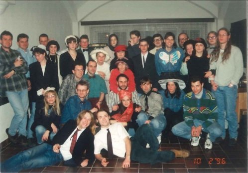 V sobotu 10.2.1996 uspořádal Ladys oslavu svých čtyřiatřicátých narozenin. Večírek to byl náramnej, pánové vstup pouze s kravatou nebo motýlkem, dámy v klobouku. K tomu všemu hrál K.R.K. Pokud na fotce objevíš všechny jeho členy, …