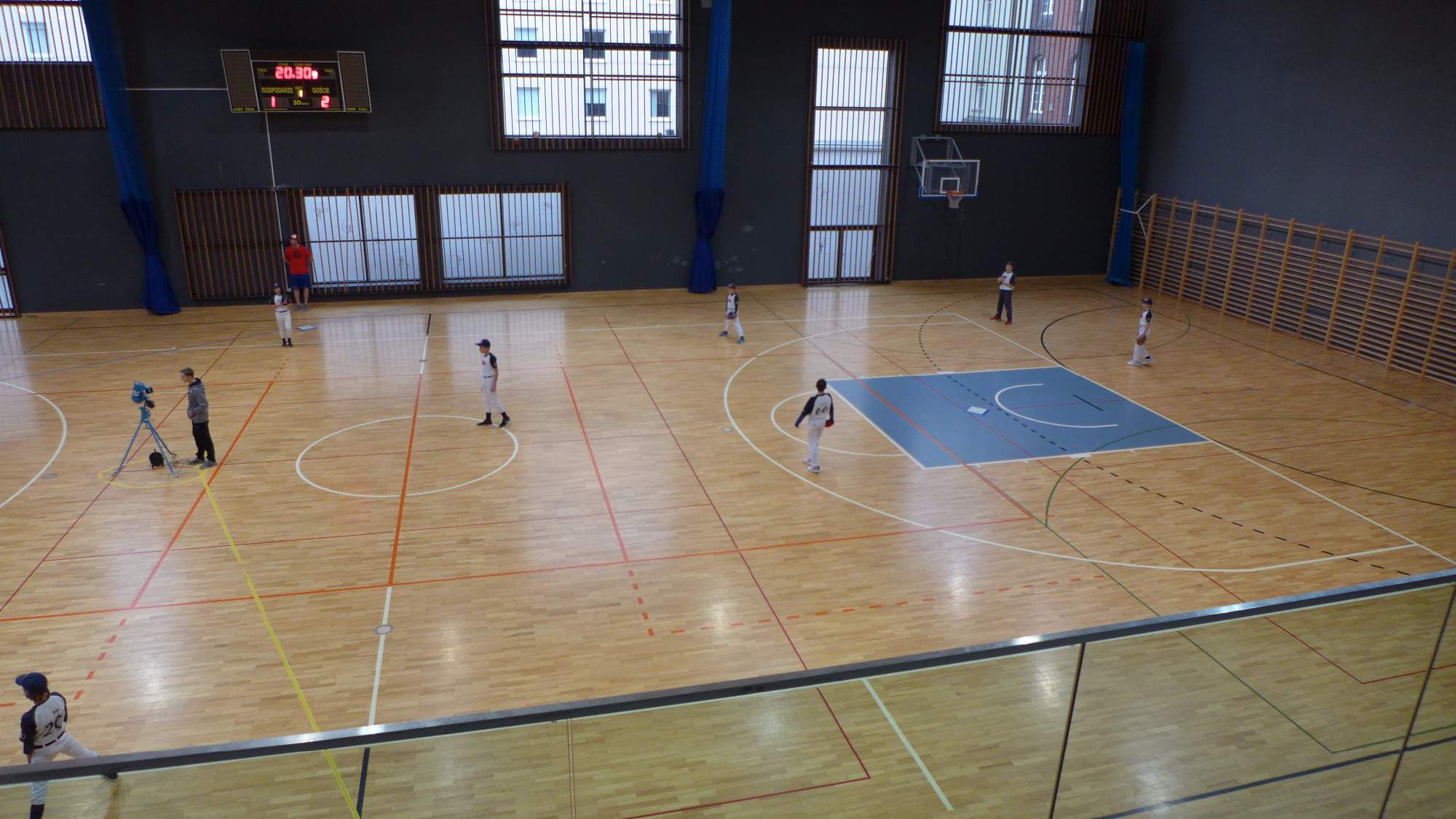 Že nám to bude chvilku trvat, než se na pálce srovnáme s nadhozem z mašiny, jsem věděl. Pálit na stroj je trochu jiné než na nadhoz. Domácí borci to mají nacvičené a nejsou ani jednou strike out. Nám se nepodaří odpálit desetkrát ze šestnácti startů na pálce. Ovšem Kutilovi nadhazovací mašinkvér vůbec nevadí a hned v prvním startu odpaluje homerun do zadní stěny tělocvičny. Hned od začátku se na stroj chytil i Firďa (singl). Ma metu se ještě dostanou Rychlík a Áňa. Markus trefí strop. Spoupeř pálí 2x do stropu, což je aut a 18x do hřiště. Naše obrana pustí jen dva doběhy.