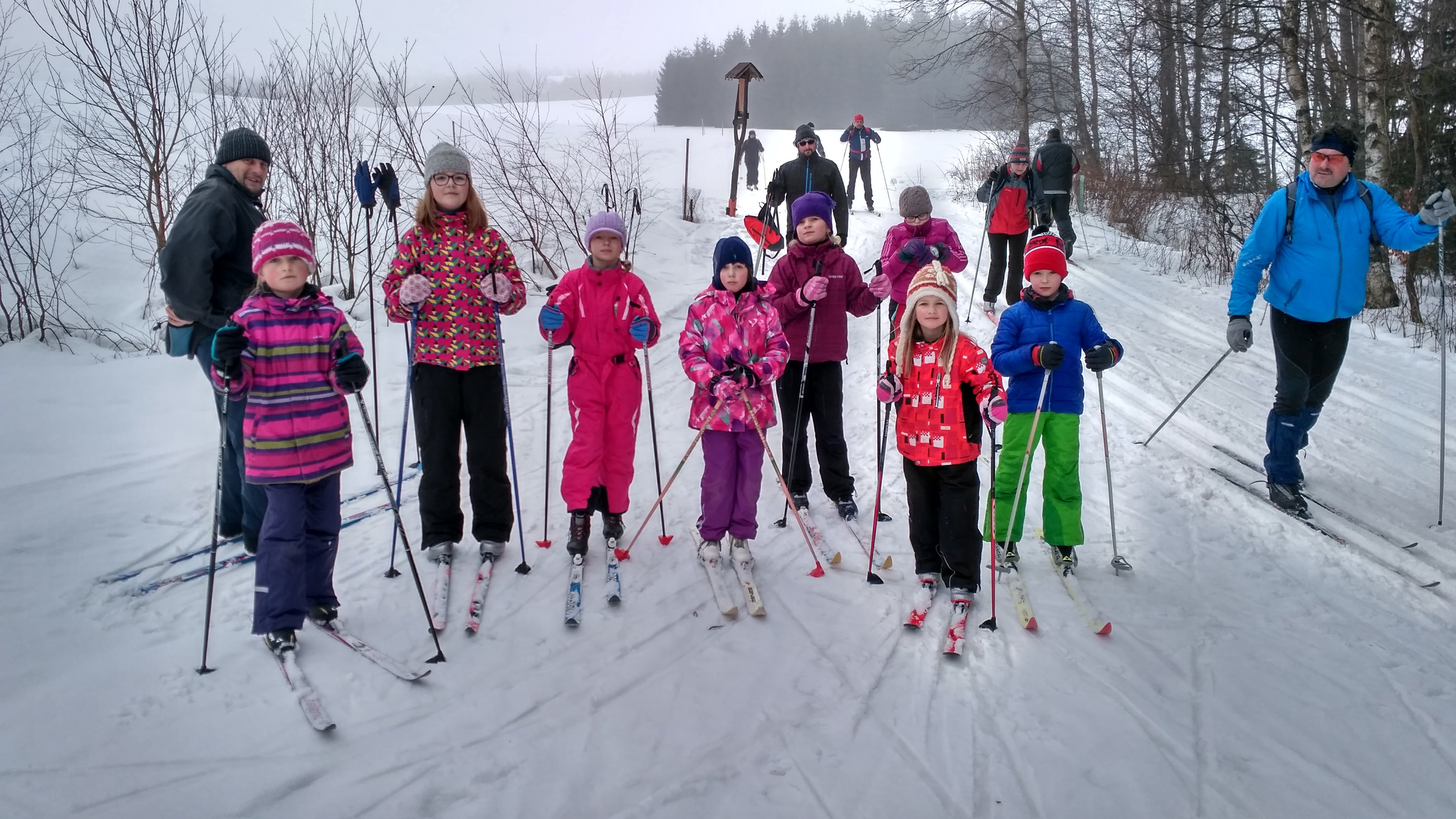 Včera večer do základního tábora dorazili Barča, Kristýnka, Kačka, Terka, Denda, Linda, Ája a Marcela. Dnes dopoledne ještě dojela Lucka (bez Matyho). Hejno prťousů šlo bobovat. Ostatní nazuli běžky a vyrazili do Nového Města na Moravě. Takže jsme vlastně dojeli až na Moravu, což bylo 5 km kořeněných několika sjezdy. Ty se dětem líbili nejvíce: Wajné, to super, jak jsem přejela Anežku. 😀 V Novém Městě na nás čekala z rána zaparkovaná auta, svačina a podívaná na závody. Pepíno s Kutilem, Járou a Markusem na běžkách jeli i zpátky.