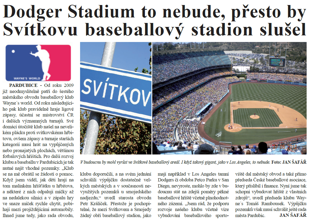 Týdeník Pernštejn píše o pozemku pro výstavbu baseballového hřiště ve Svítkově.