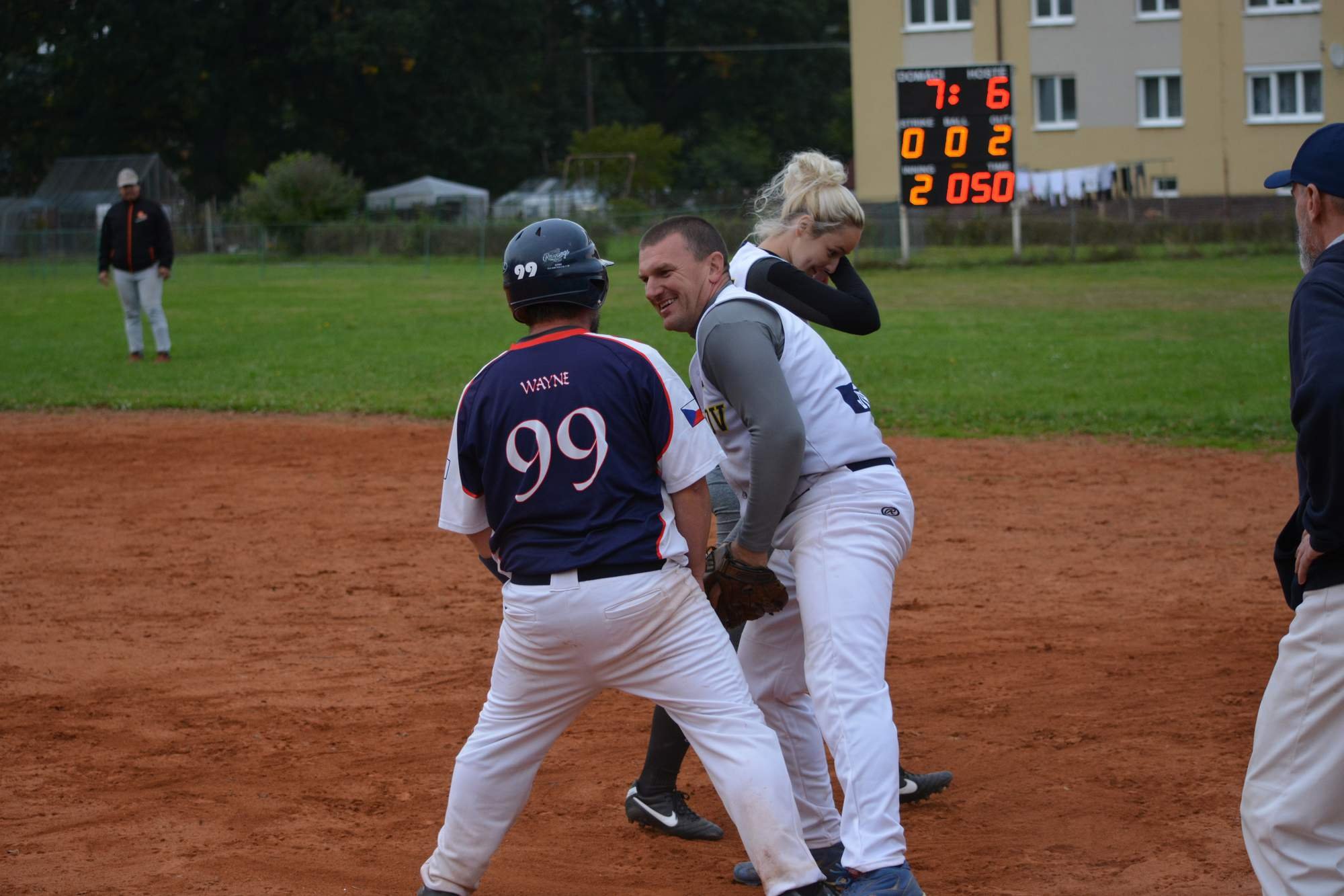 Vlky jsme letos porazili vždycky a vždycky o hodně. Všichni tak nějak předpokládáme hladký průběh. Wayne v první směně urve HR in park, víc ale nic. Wolfs po dvou hitech a havranem Michala otáčení na 3:1. My v druhé dáváme devítku a zdá se být hotovo (3:10). Domažlice po sérií hitů a našich chyb a nepřesností stahují na 8:10. V poslední pro klid duše nepřidáváme ani bod. Na hřišti už je vidět jen světelná tabule. Dohrávka vlků – 2 auty, 1. a 2. Meta obsazená, Michal z Havraspáru na pálce. Díky bohu vysvítil na Wayna a nevyndal. Uf.