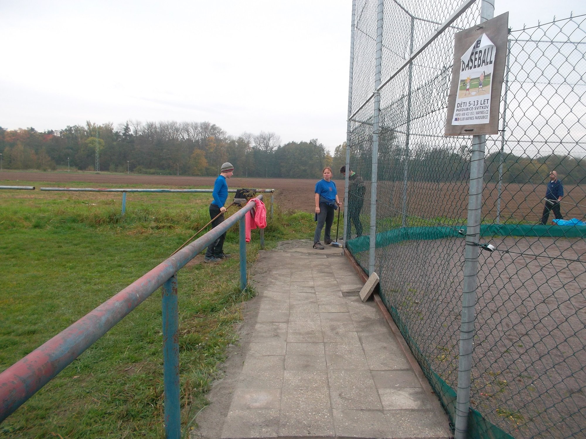 Brigáda 21. října 2017 byla gramaticky jednoduchá. Přišly ženy a děti. Takže tvrdý Y. Mamky a účka rozvozily drť k homerunovému plotu a vytvořily warning track.