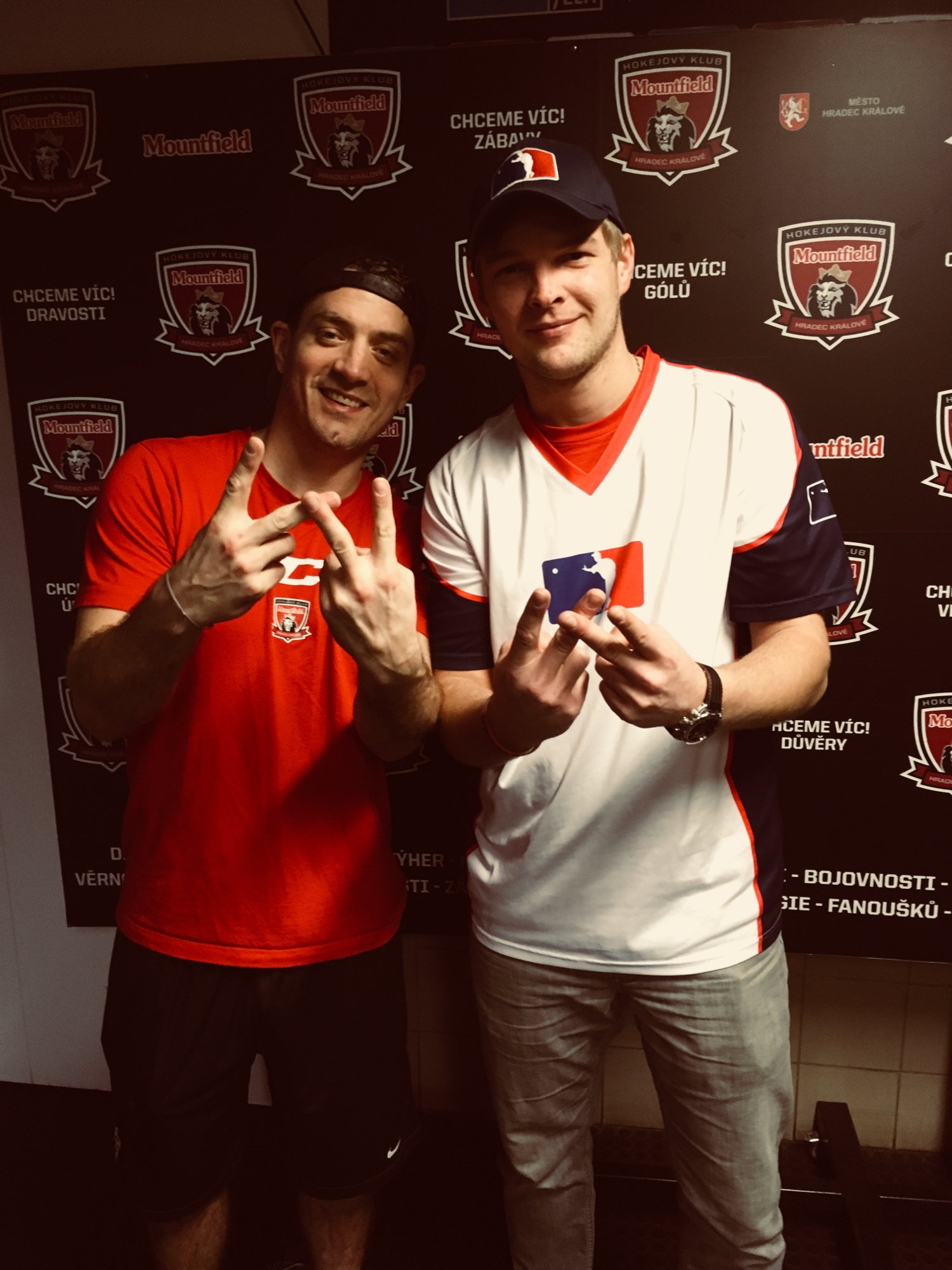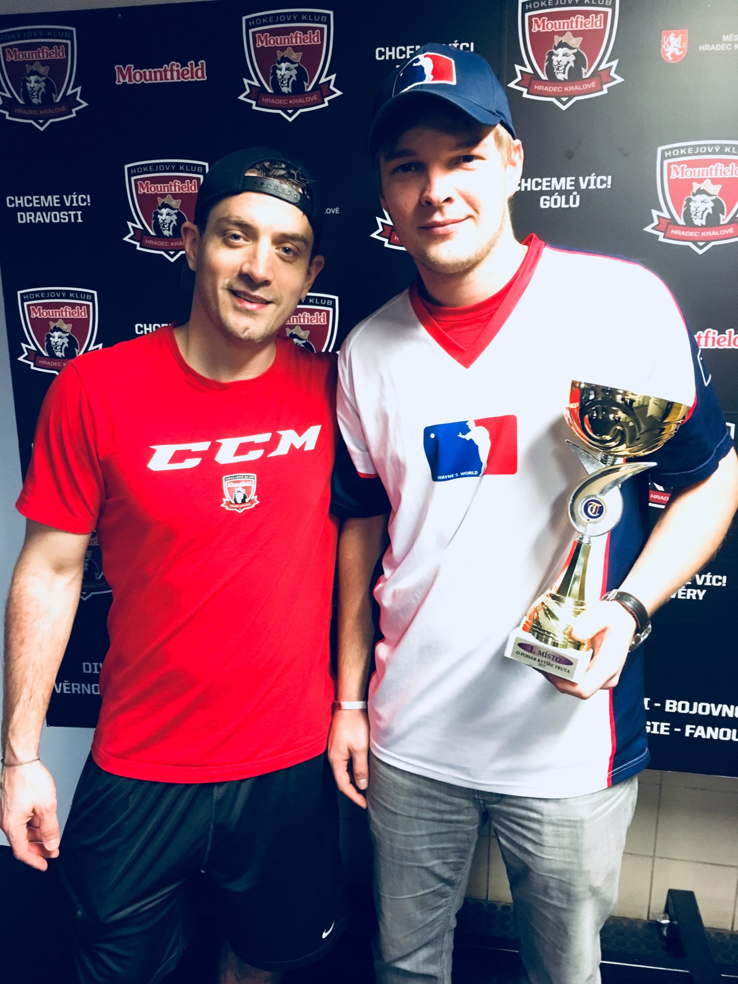 Ted má rád hokej a tak není divu, že fototo s pohárem z Truta 2017 (1. místo a Tedův první HR za WW) jako fanoušek Hradce Králové pořídil společně s hokejistou Mountfield HK Petrem Koukalem, čímž potěšil i nás pardubáky. Petr Koukal hrál za Dynamo 11 sezón. Já rivalitou Perníkov – Mechov rozhodně netrpím. Mám radost, že si Ted dal s fotkou práci – myšleno nápad i realizace. Tede díky.