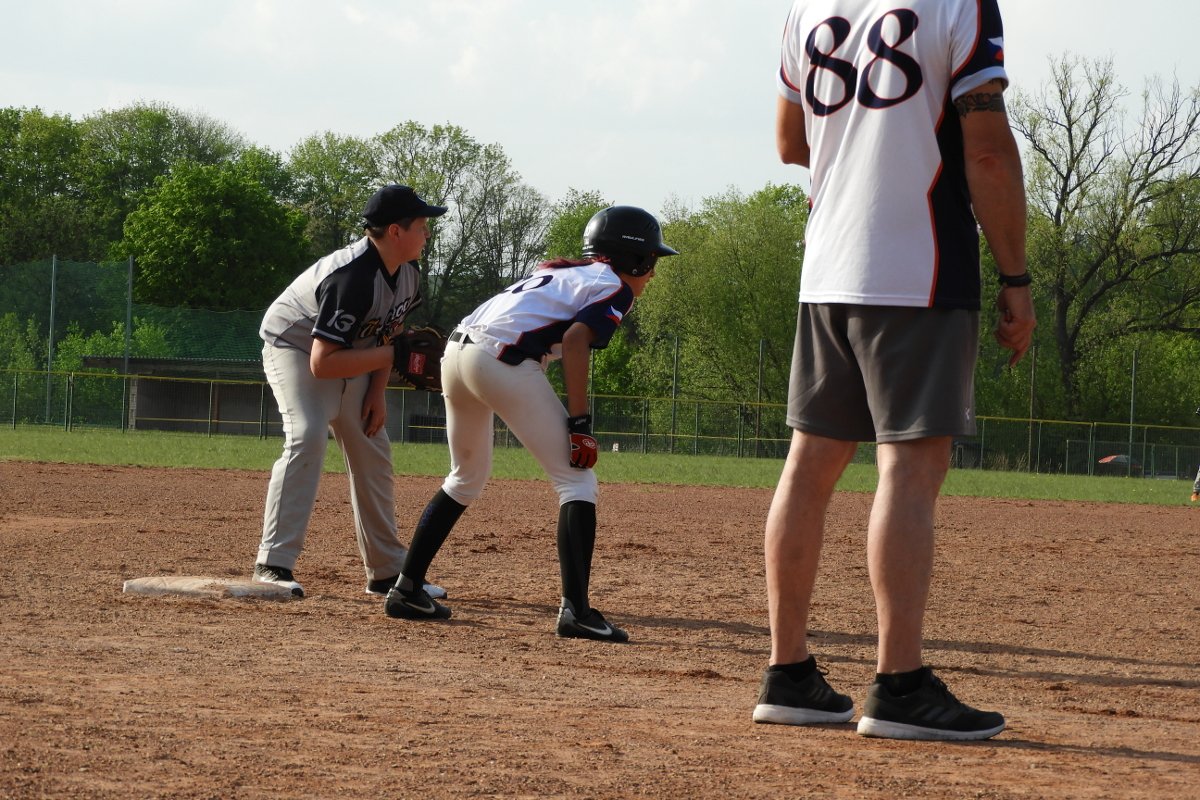 Po dvou směnách to s námi nevypadalo růžově, prohrávali jsme 1:6. Střídání nadhazovačů na obou stranách otočilo vývoj utkání o asi milijón stupňů nebo tak. Dobře pálíme, poznáme BB a ve třetí směně už vedeme 7:6. Zůza udržela inning bez doběhu na dobrý počet nadhozů.