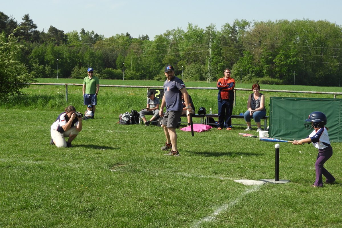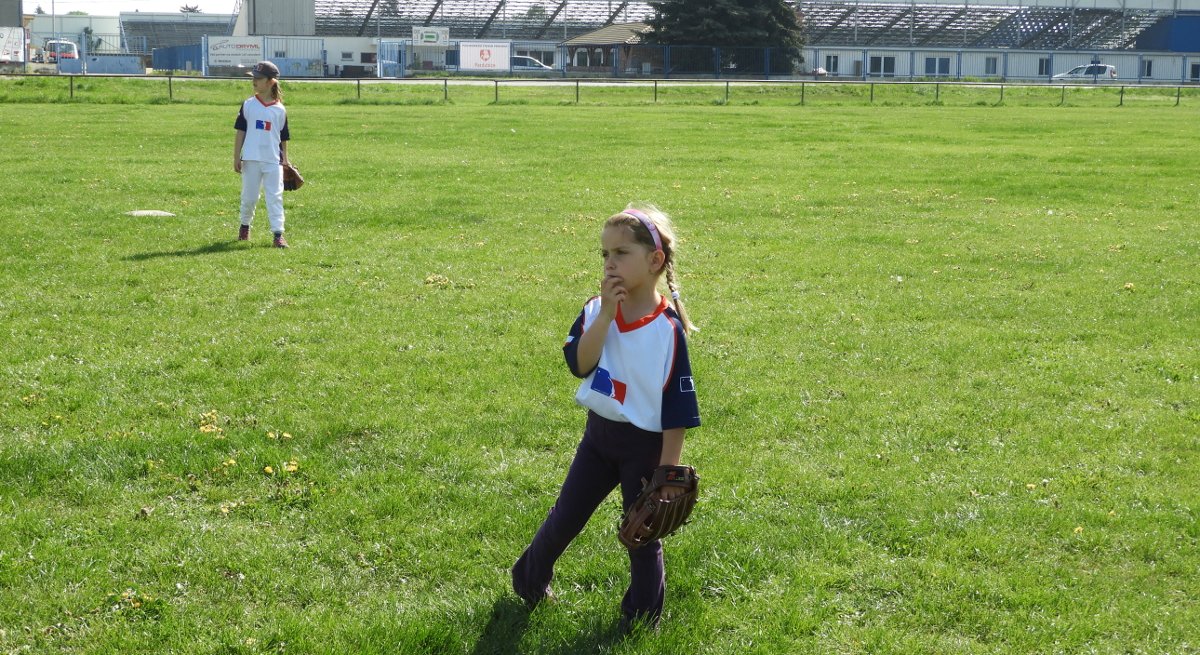 V Pardubicích se 29. dubna odehrálo 1. kolo soutěže U7. Malé Koláčkyně už se s WW partou kamarádí všechny a dvě mladší právě do této kategorie patří. Než zápasy začaly, bavím se v Waynem o tom, jak dlouho ještě musíme vydržet hrát, abychom se na hřišti potkali s nejmenšími potomky. Mno, min. ještě 10 let. K tomu je třeba započítat faktor nezájmu puberťáka sdílet aktivity s rodiči a šance se rapidně snižuje. No, a pak je tady soutěž U7, kde na 1. metě chytá dospělák. Je to jedna z těch nabídek, které se neodmítají. Navíc nás bude kaučovat Pepíno, Eliška pomůže řadit hráče na pálce. To už můžeme říci, že hrají všichni Koláčci.