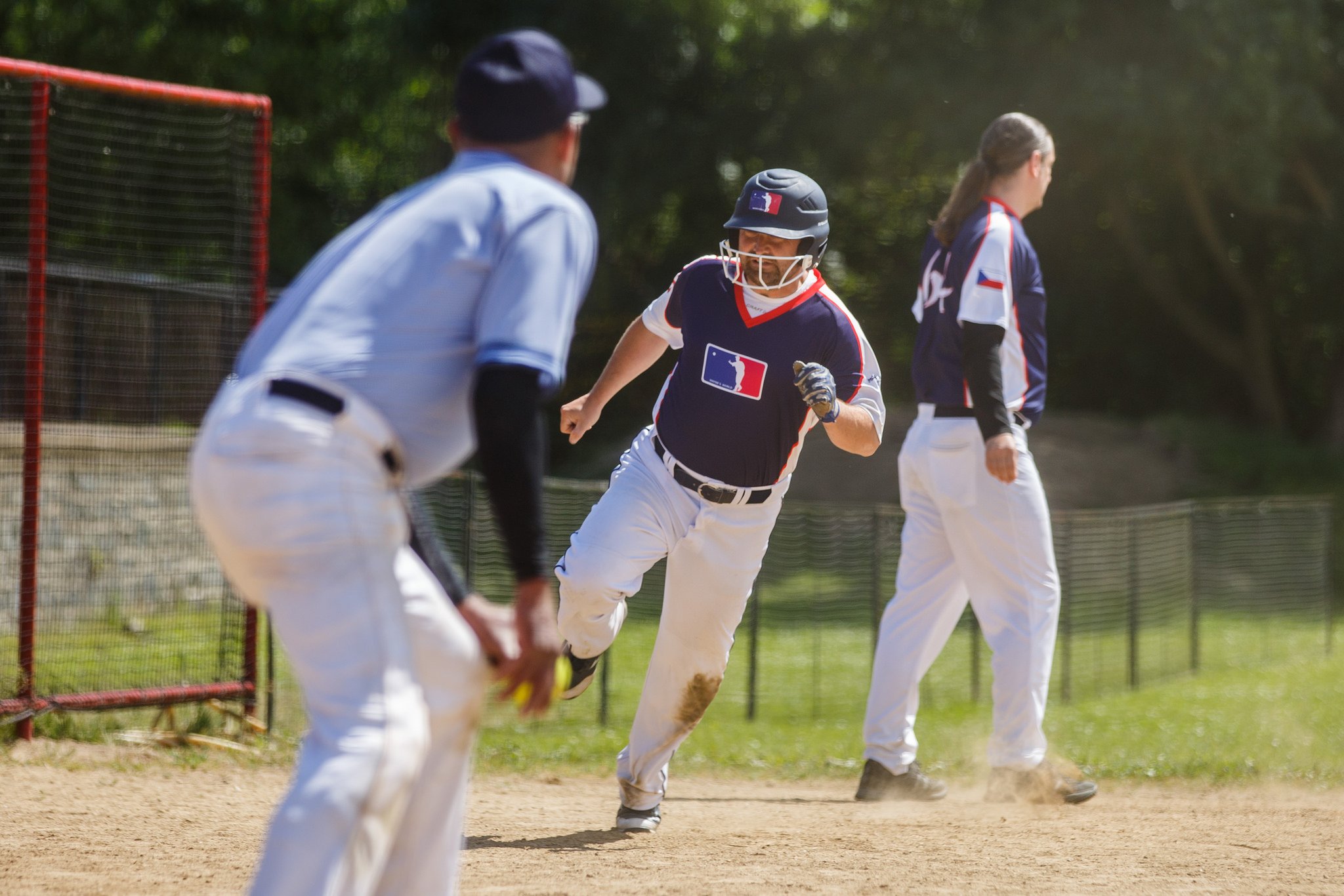 Pepa zahajuje zápas dvoumetovým éčkem (svým). My na pálce rychlovka a bez bodu. Pálíme až ve druhé – Wayne (3B), Helča, Olí, Ted(2B), Bára a vedem 3:1. Berlínská míchanice národností přestává pálit naštěstí úplně. Já se konečně trefil a prej to bylo dobrý. Dva body nám udělal Javier – muž v modrých teplácích.
