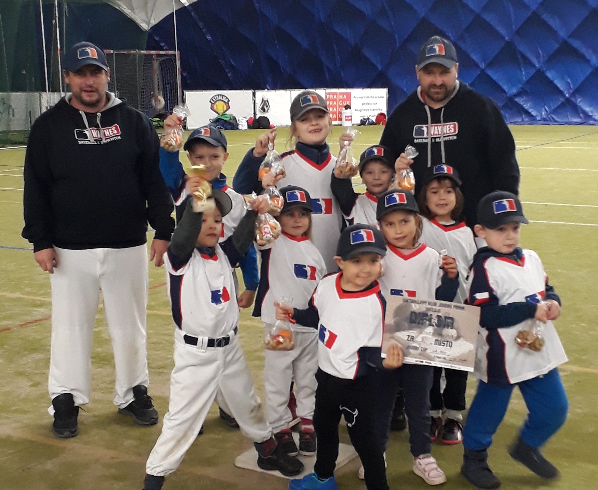 Ještě se mají hrát dva zápasy a my napjatě čekáme, jak to dopadne. Když Joudrs porazí Piraně nebo Eagles vyhrají nad Bleskem, budeme první. Nakonec to dopadlo přesně obráceně a my obsazujeme skvělé druhé místo. Dostali jsme pohár, diplom a nadílku od Mikuláše.