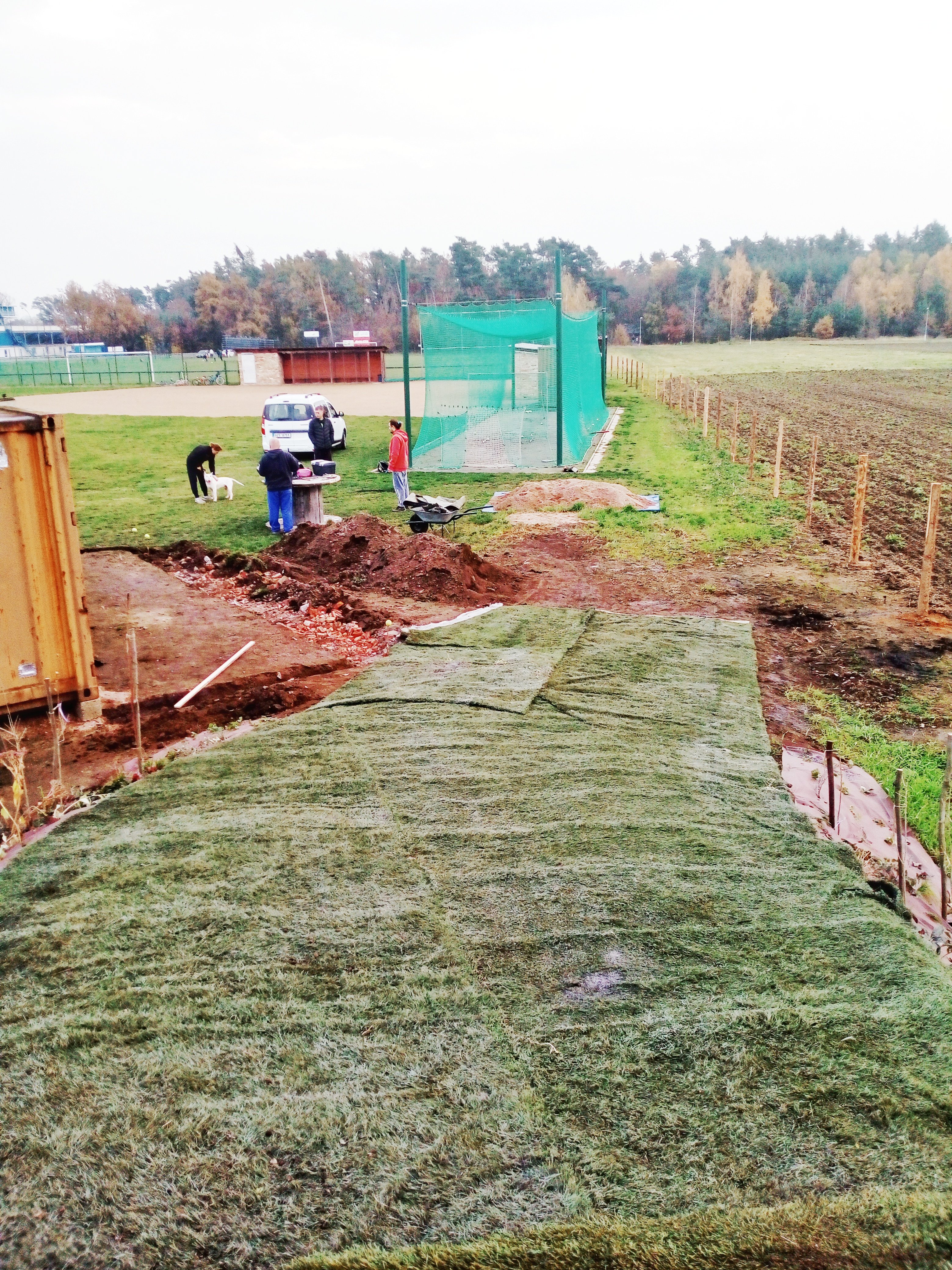 Práce na Waynes fieldu pokračují i listopadu. Nejvíce pozornosti věnujeme rohu u Plynostavu. Před dokončením je tréninkový kopec “Sjezdovka”. Čas si udělali Olí, Tomáš Novák, Míra Folvarský a Šakal. Díky.