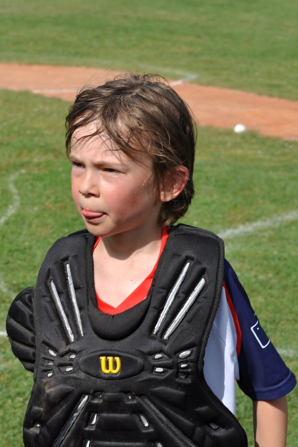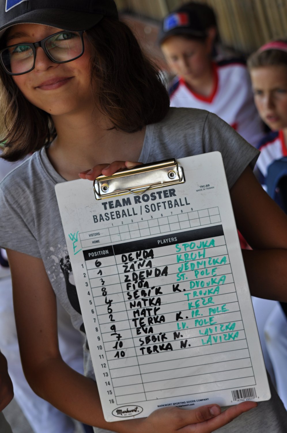 Martin hlásí, že ho bolí noha. Střídám ho za Evku, čímž si vyplácám možného pinch hittera na konec zápasu. Po dvou minutách Martin hlásí, že je noha už dobrá. Škoda, že Harantol mám ve stanu.
