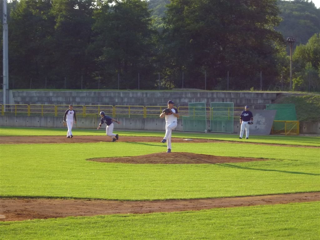 Historicky první baseballové utkání si vyžádalo odloženou premiéru. Po pátečním krupobití, které dozajista zařídil nějakým woo-doo Kubajs, se hrálo včera 13.8.2013 od 18:30 v orlím hnízdě domácích Chocňů.