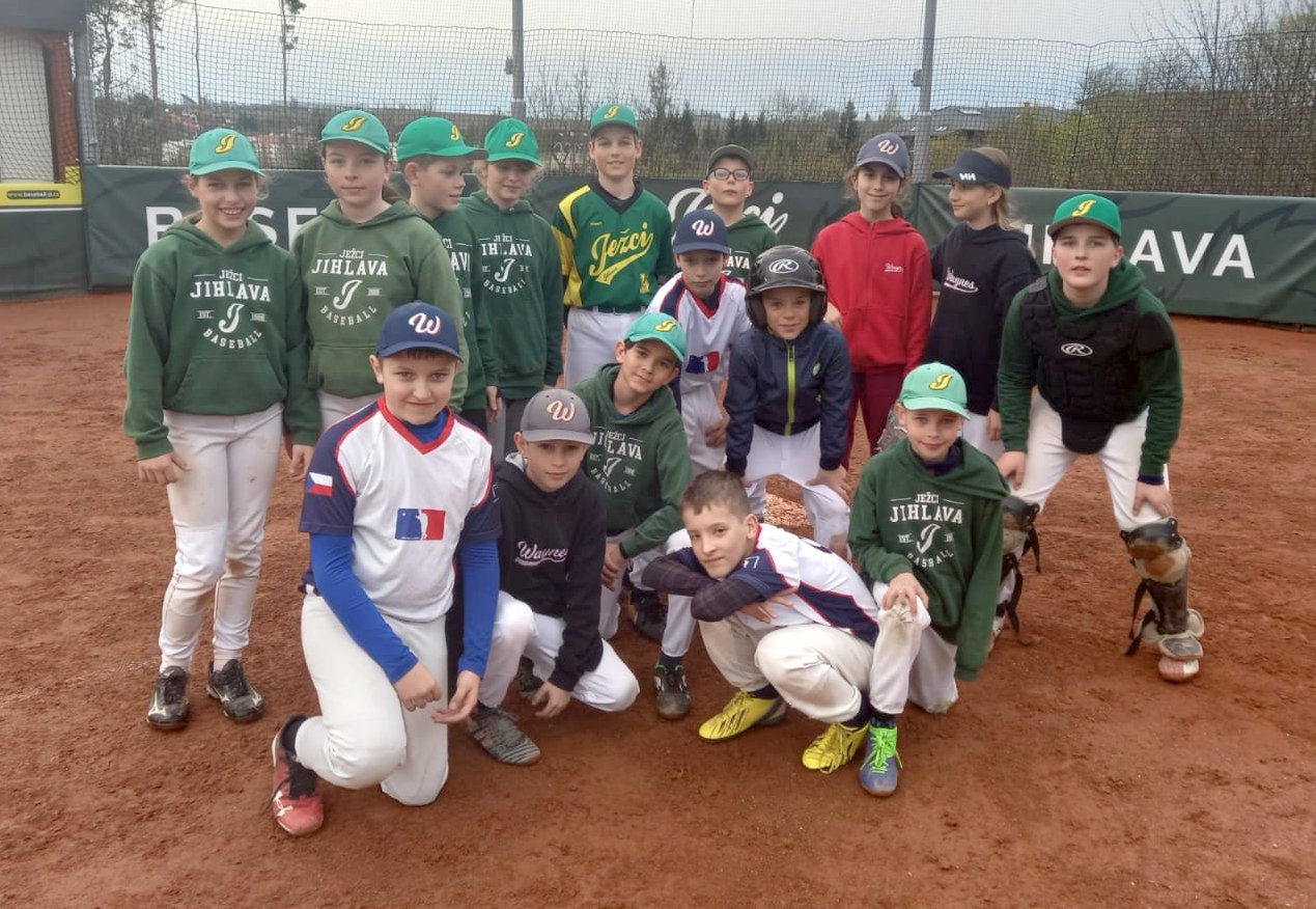 V Jihlavě chvilku trochu prší, ale pak se vyjasní a my si konečně můžeme zahrát. Ježci nám půjčí tři hráče a hrajeme baseball s nadhozem. Druhý zápas hrajeme jako coach pitch (hází Čočo). Hrajeme a hrajeme a je to prima a najednou je půl osmé.