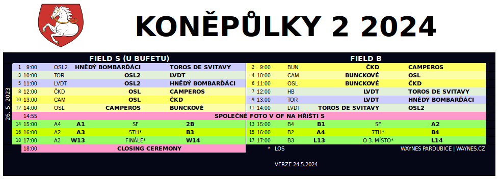 | 26.5.2024 17:00 | Field S | Umpire Pořadatel |