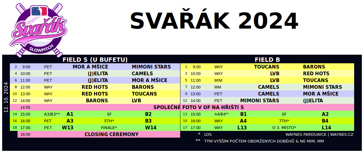| 12.10.2024 12:00 | Field B | Umpire Mor a Mšice |