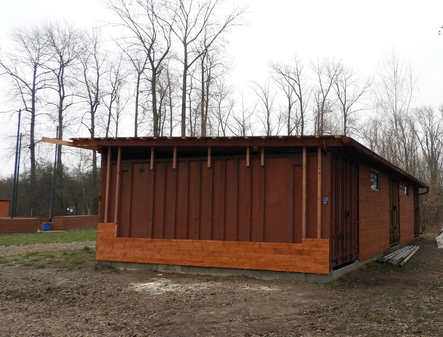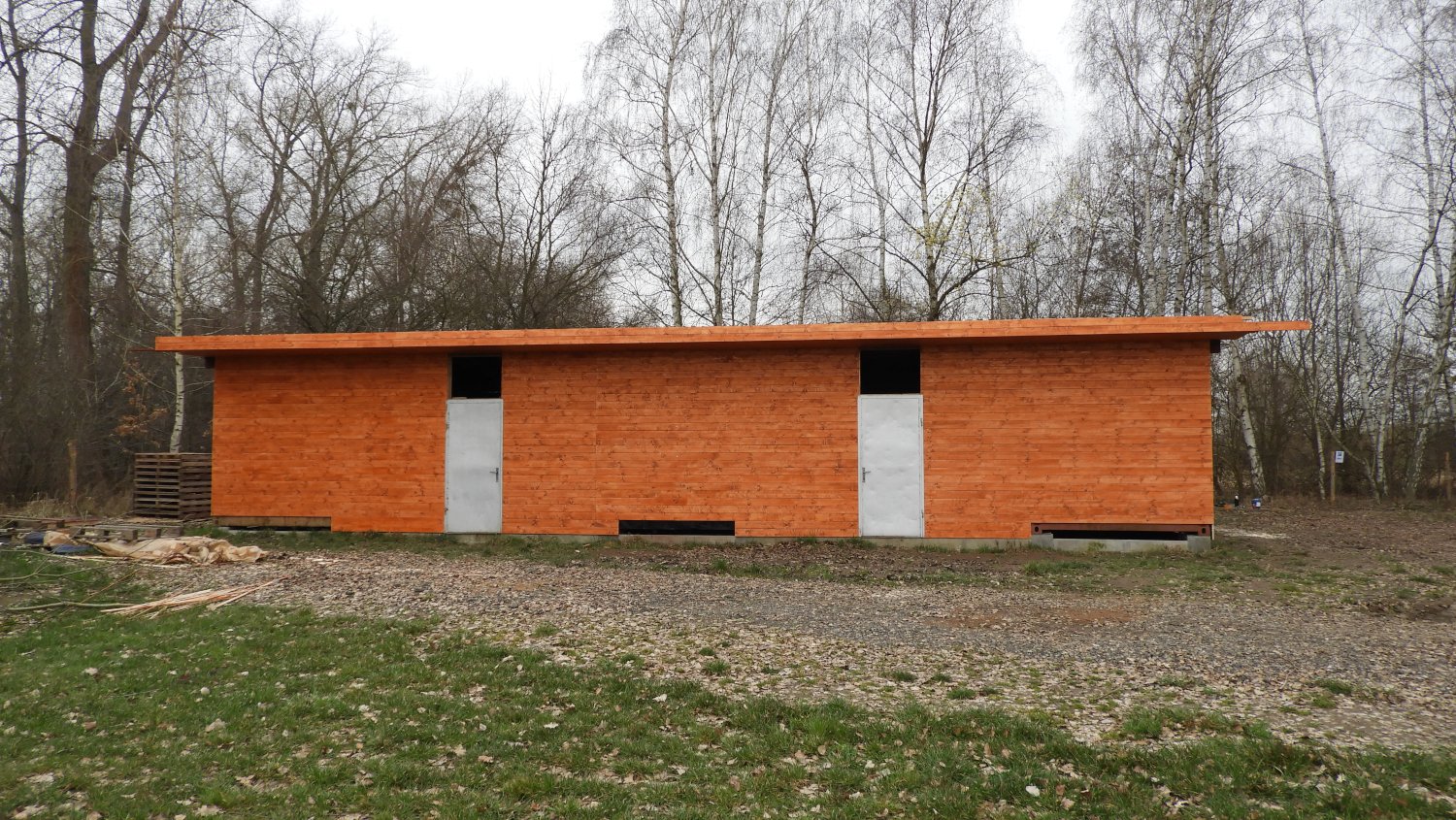 Ve všední dny pokračuje výstavba šaten za odborné pomoci Jirky Pleskota.