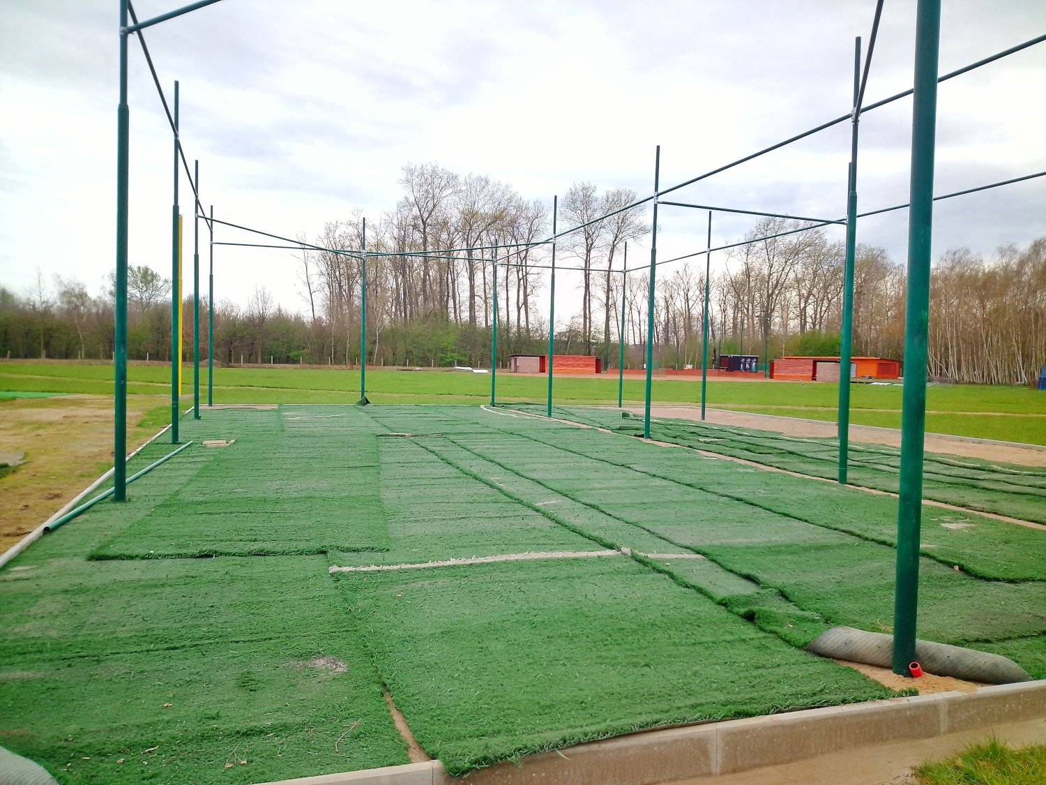 Příprava areálu je v plném proudu. V neděli 24.3. jsme udělali podezdívku kontejnerů v šatnách, začali jsme připravovat pálkařské klece pro pokládku umělého trávníku, natřeli jsme sloupy. V týdnu Zdenda Král a Wayne zhutnili podklad v klecích. Hofík průběžně připravuje bufet. V pátek 29.3. začala pokládka umělého trávníku. Danka dotřela mříže do dugoutů. Koláčkyně se daly do pletí softového infieldu.
