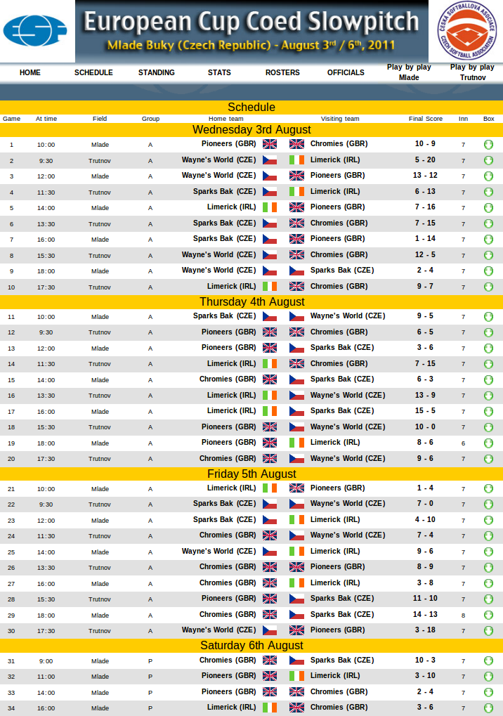 výsledky na webu ČSA
