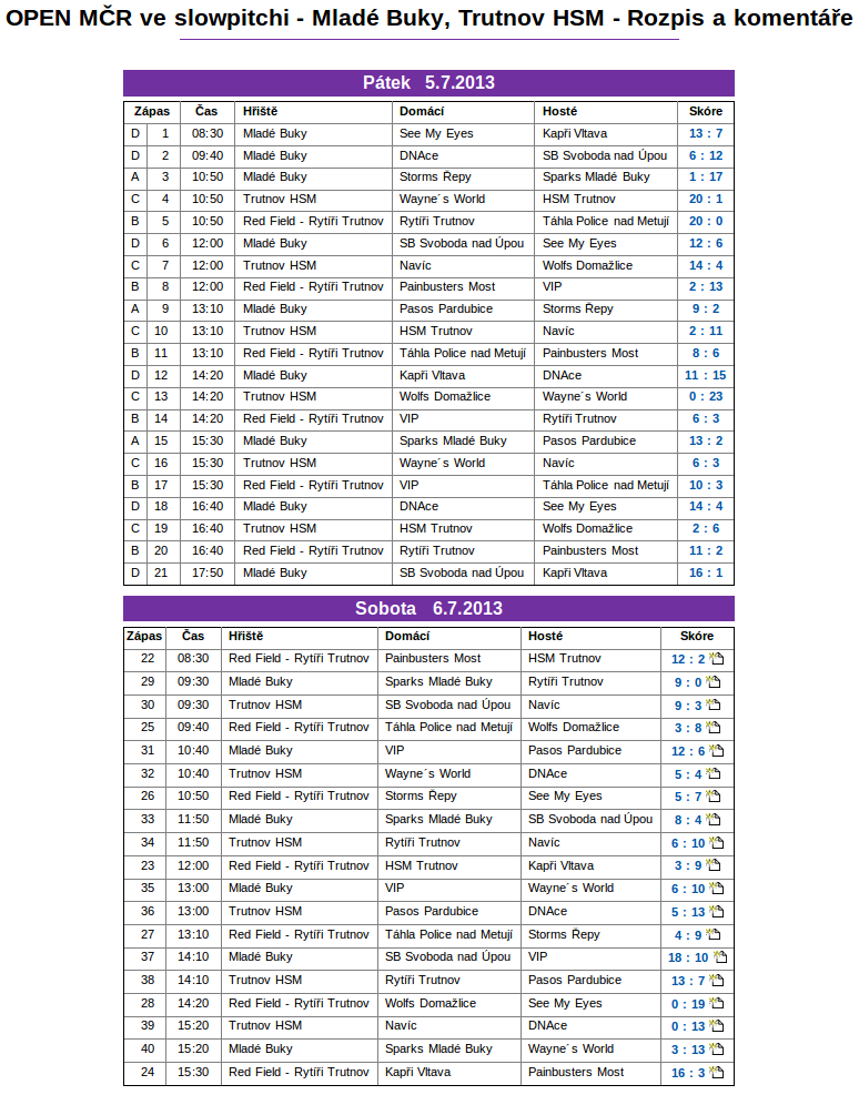 výsledky na webu ČSA