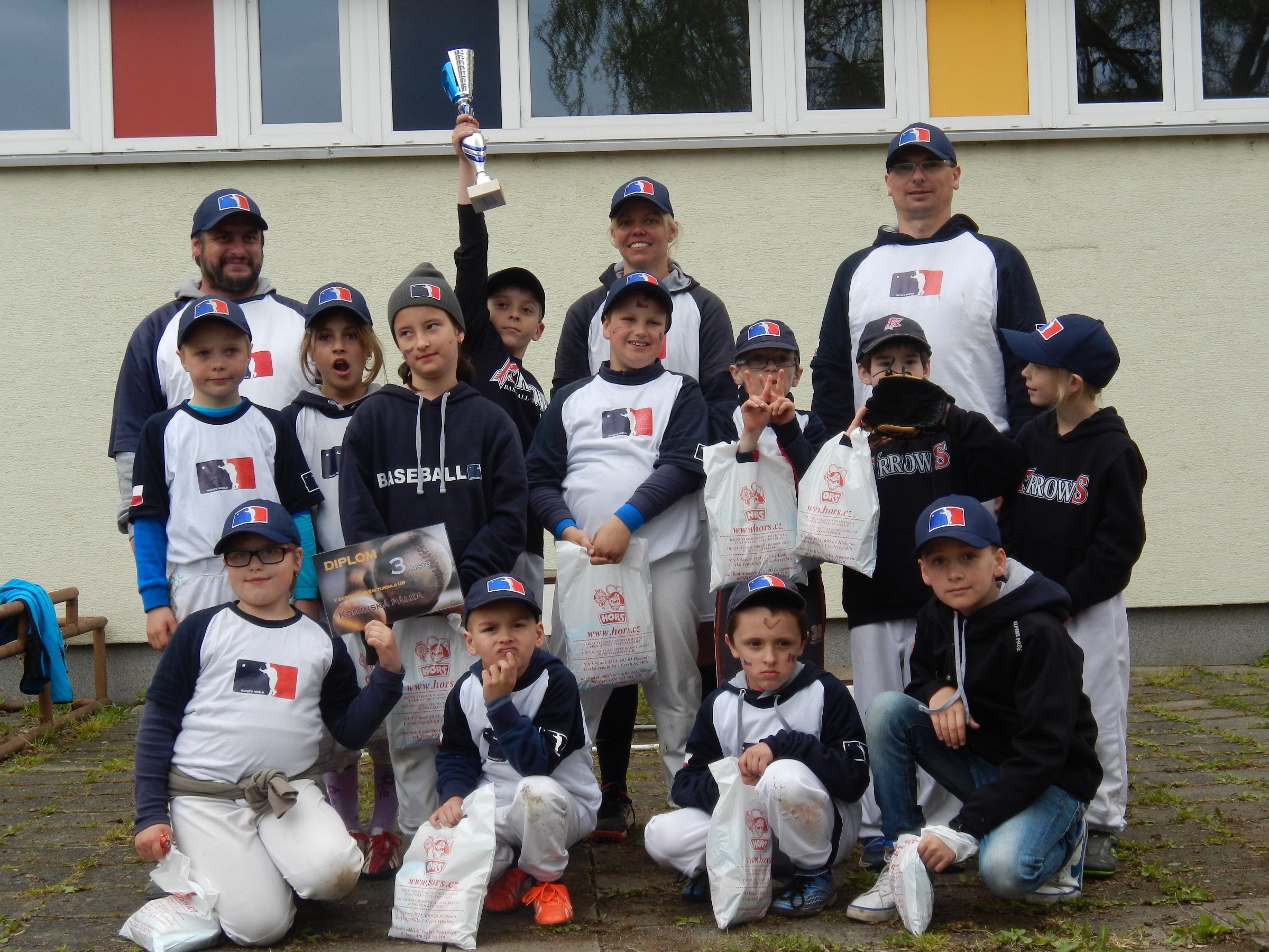 Komínskou pálku považujeme za vrchol sezóny kategorie U9. My dospěláci jsme zvědaví, jaký level nás Brně čeká. Účka snad něco okoukají a zahrají si výstavní baseball. Víc než předpověď počasí nás ale trápí že se při přepočítávání hráčů nemůžeme dopočítat devíti. No nevadí, bereme dvě U-sedmičky, co se trefí do nadhozu a zároveň je malá šance, že se nechají v poli zastřelit.