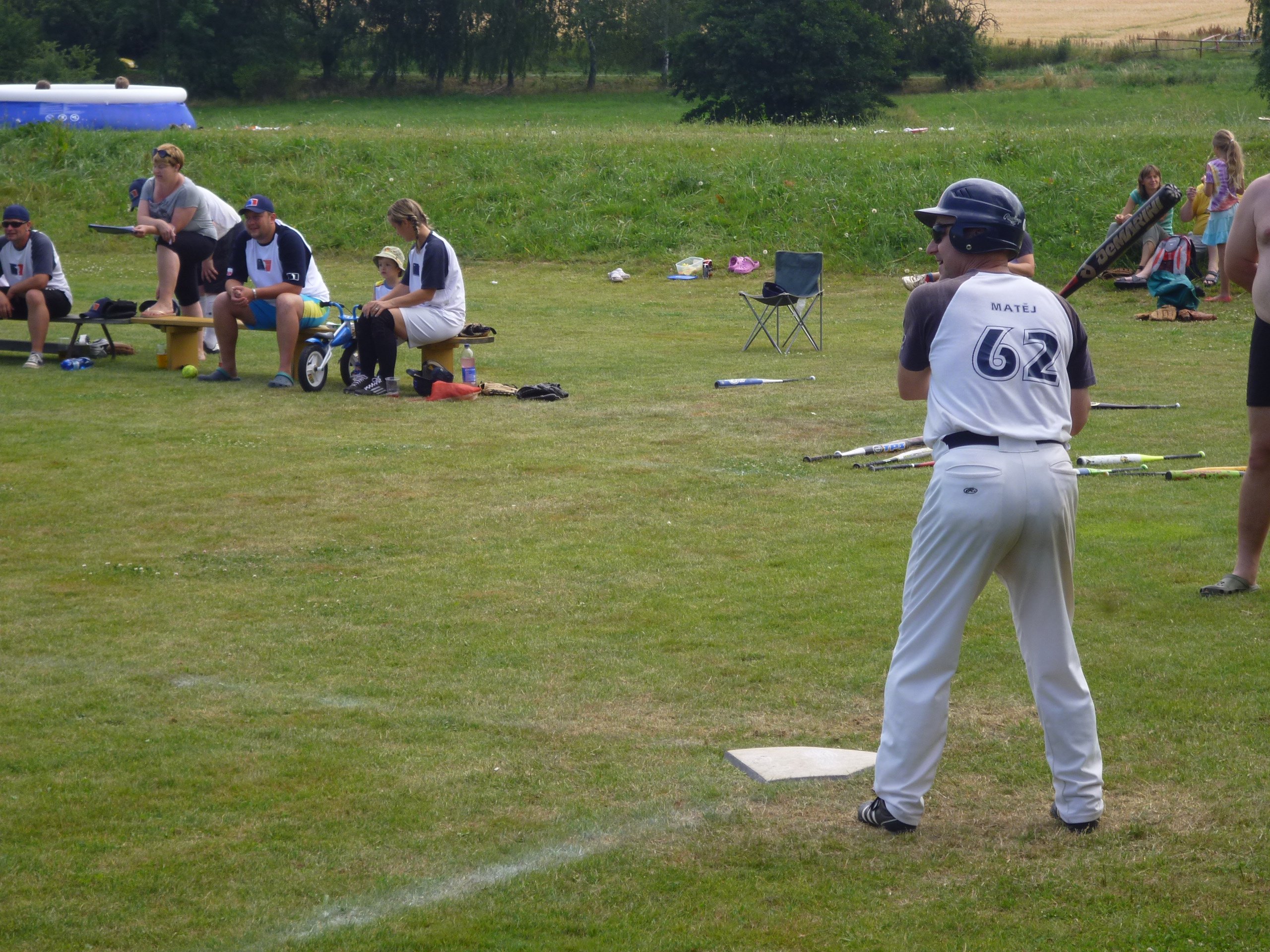 V prvních dvou směnách zaznamenáme jen jeden odpal (Olí) a Plzeň vede 4:0. Mari totiž ztratil rukavici a s půjčenou není schopen chytu. Tak ho schováme na kečra. Olí rozehnal osazenstvo bazénu přehozem ze spojky a v zahradě za trojkou mizí pátý balón po fábolu. Pak se nám splaší kladiva.