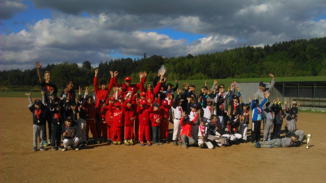 Druhý zápas hrajeme o poznání klidněji. Do infieldu nasazuji nováčky a začíná koloběh číslice 1000. Na pálce jasně přepalujeme vnitřní pole a bez větších problému skórujeme v každé směně. Ondra hrající na spojce, běhá pro balony hned od prvního momentu. Emička se hledá v zadním poli. Luky W. a Luky I. vedou celou skupinu a po třech směnách všichni propukují v radost z vítězství.