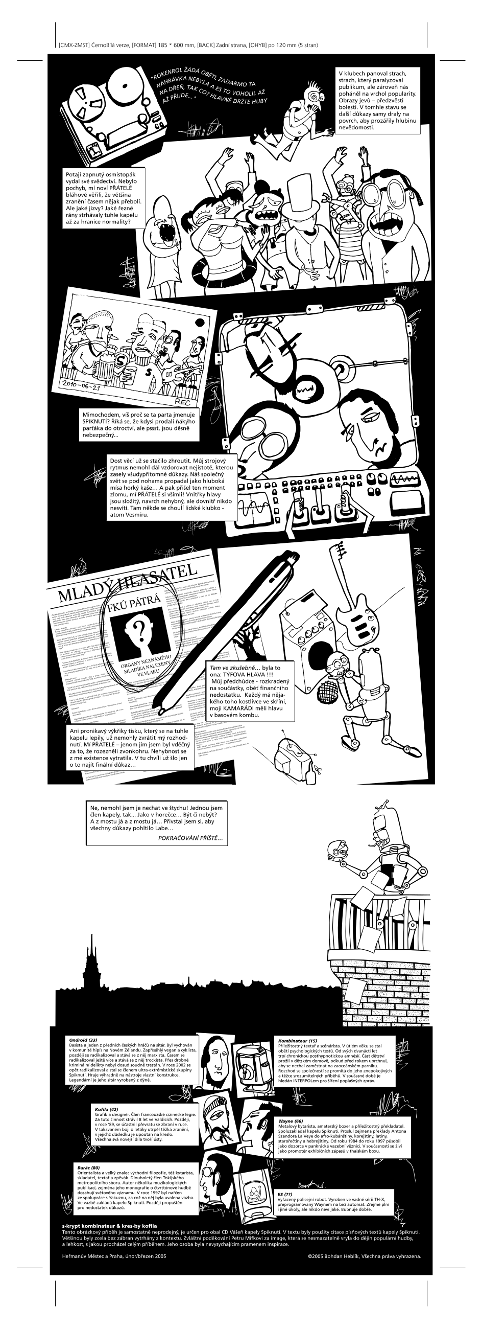 Pro EP Spiknutí Vášeň jsme si vymysleli, že chceme jako booklet komix. Poprvé jsme pro CD použili DVD formát krabičky. Komix vymyslel a nakreslil koFila. Komix je o nás. Jsem týpek z komixu.