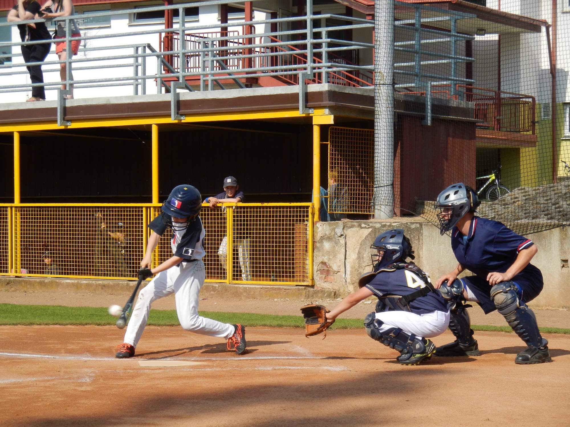 Stella po chybě obrany obsazuje jedničku a na nechycený nadhoz se posouvá na druhou metu