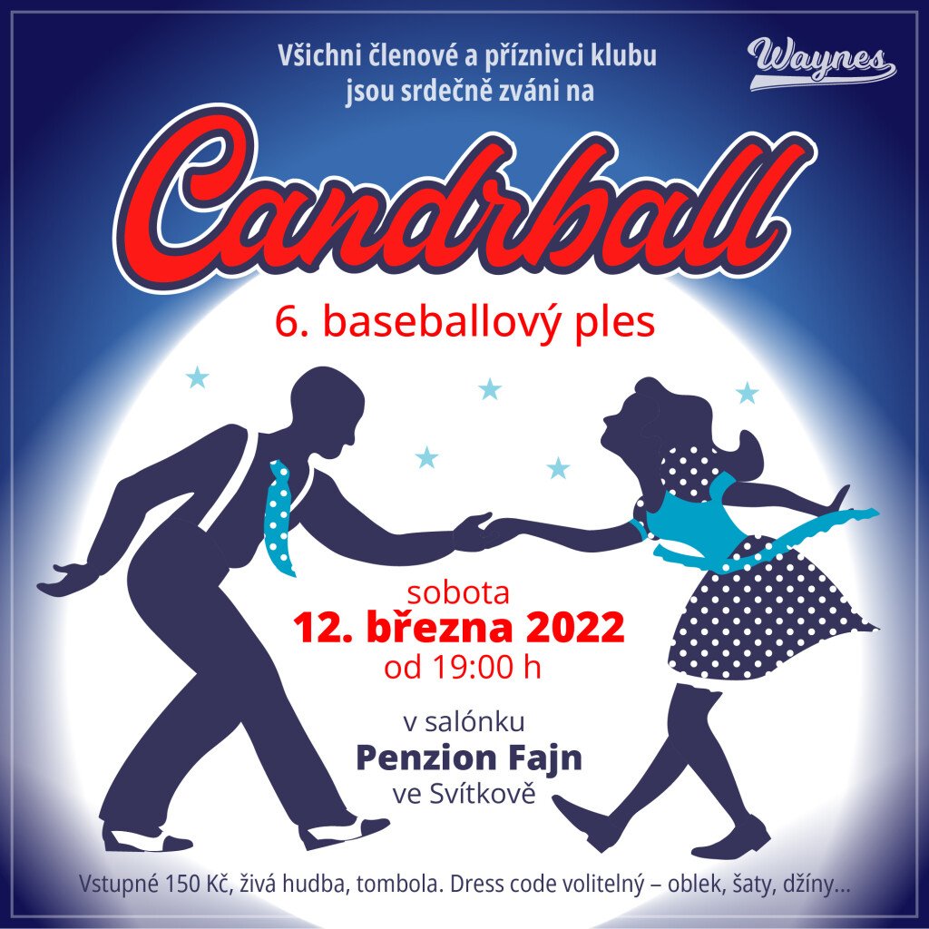 Milí kamarádi, spoluhráči, svěřenci, rodiče, příznivci, sousedi, soupeři přijměte pozvání na šestý baseballový ples Candrball, který pořádáme v sobotu 12.3.2022 od 19 hodin v salonku Penzionu Fajn.